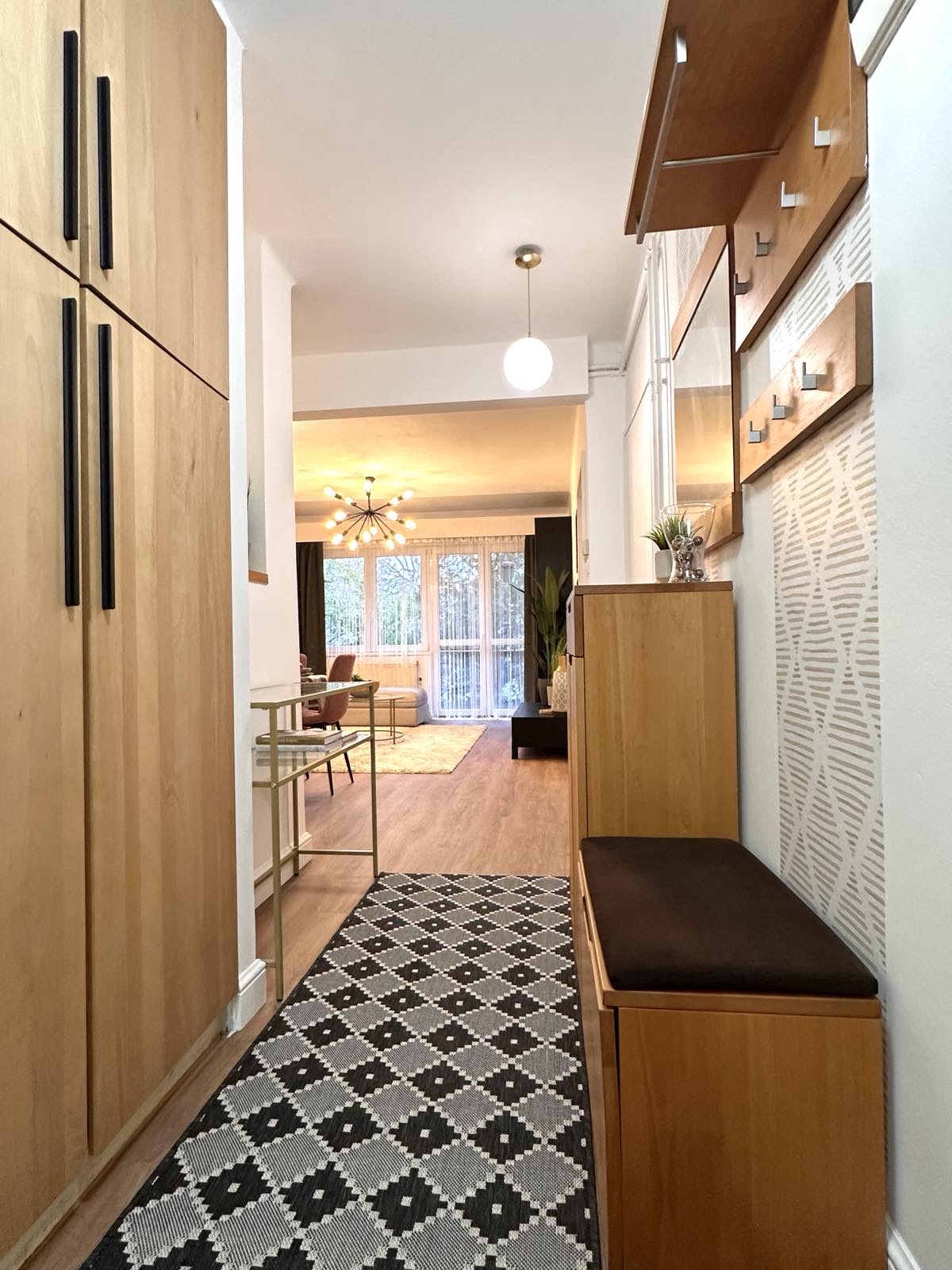 With 2 separate bedrooms, this stylish apartment comfortably accommodates up to 6 guests. Its interior has been thoughtfully designed, featuring clean, contemporary lines and elegant, modern furnishings. You’ll love the direct garden access, where you can enjoy your morning coffee in peace – and if you’re lucky, you might even spot squirrels playing in the trees, a delightful treat especially for nature lovers and families with children.