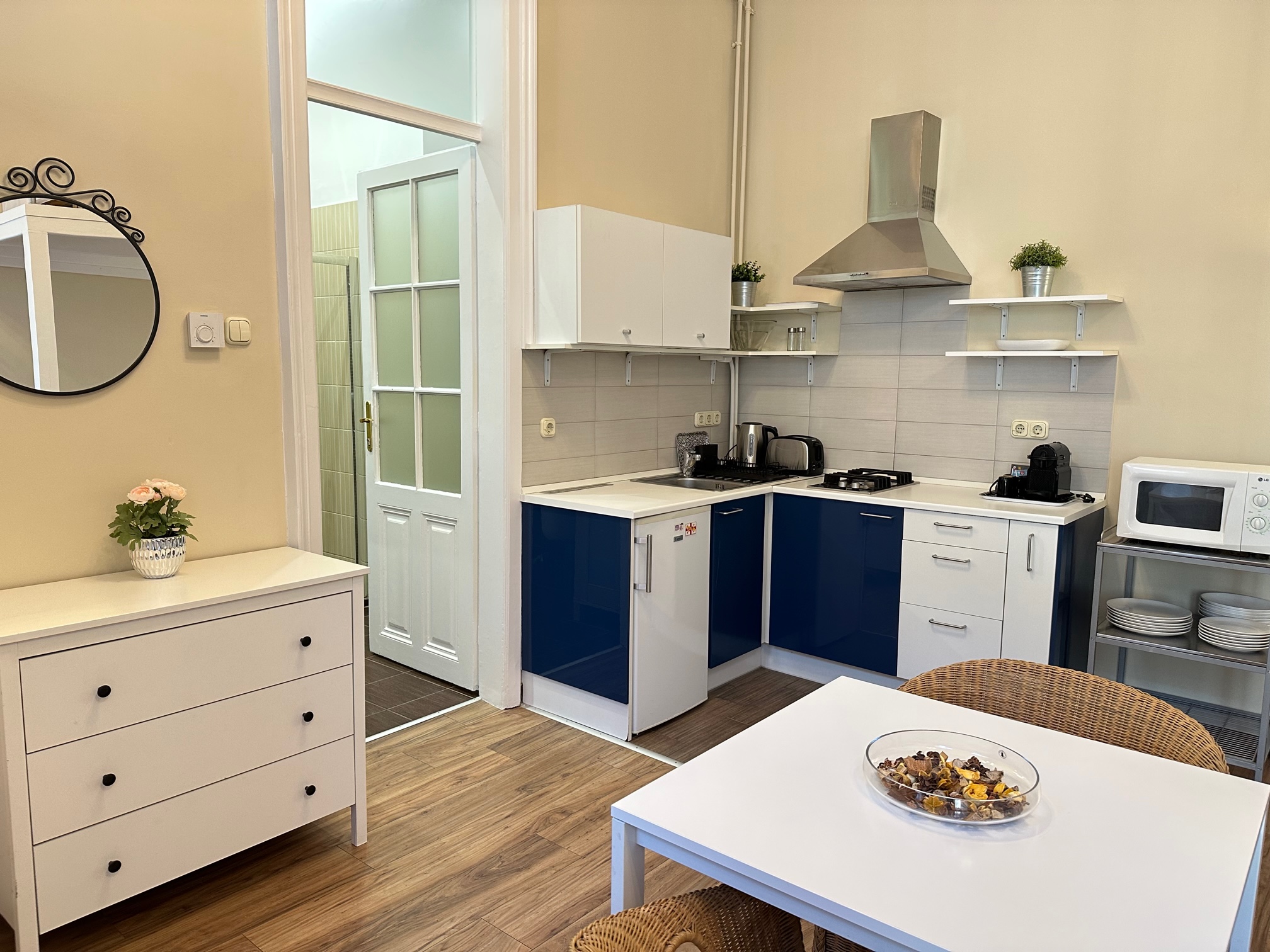 Teljesen felszerelt második emeleti 2 stúdió apartman Budapest szívében, a Nagy Vásárcsarnoktól pár lépésre.